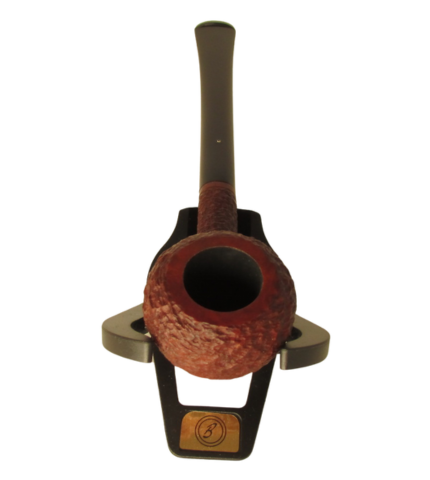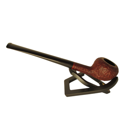 This straight Prince has some unique features. First, the pipe has a beautiful burgundy stain. Second, the pipe is rusticated with an artistically placed smooth accent around the opening of the bowl. A slight flattening on the base of the bowl means this pipe will sit upright unattended. The shank is stamped "00", "E". Own a piece of history; there are no more Calich pipes being produced.