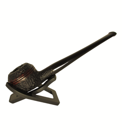 Own a piece of history; there are no more Calich pipes being produced! This straight Rhodesian comes in all-dark rustication with a small smooth briar ring where the saddle stem and shank meet. The shank is stamped "00", "E". Sits upright unaided on a flat surface.