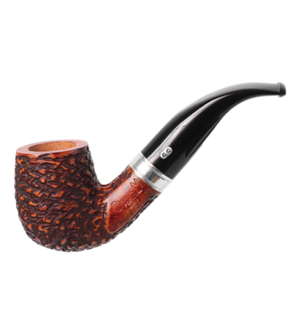 The Chacom  Festival No. 41 is a robust briar pipe with a rusticated finish, a black acrylic stem and a beautiful metal ring. This bent pipe with a well-rounded bowl and shank offers a comfortable and natural grip. This tobacco pipe also has a substantial wall thickness to prevent overheating. Finally, this 9mm filter pipe comes with an adaptor for all smoking options. Made in the Chacom workshops in Villard-Saint-Sauveur, just outside Saint-Claude France. Delivered with a Chacom branded cotton bag.