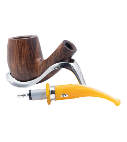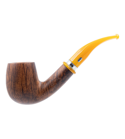 The Chacom Montmartre No. 43 is a curved pipe with a "Neogene" shape (also called "Billiard”) featuring a matte brown finish, a chrome band, and a marbled yellow acrylic stem. With its classic shape, the Montmartre No. 43 is comfortable to hold. Made in the Chacom workshops in Villard-Saint-Sauveur, just outside Saint-Claude France. Delivered with a Chacom branded cotton bag.