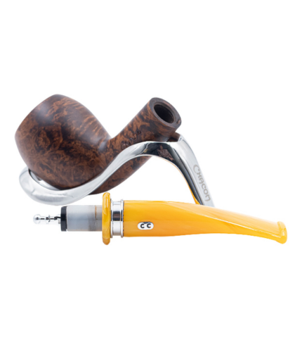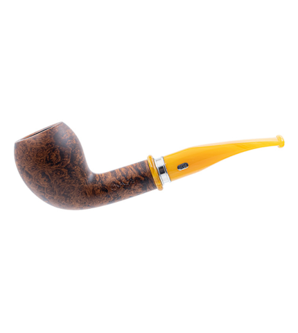 The Chacom  Montmartre No. 99 is a unique half-bent pipe with a warm brown satin bowl and a marbled yellow acrylic stem. Pipe smokers appreciate the harmony of this pipe, especially the smooth transition between the bowl and the stem. Made in the Chacom workshops in Villard-Saint-Sauveur, just outside Saint-Claude France. Delivered with a Chacom branded cotton bag.