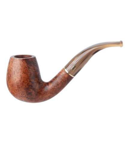 The Chacom Savane No. 851 is a bent pipe with a smooth brown finish, a brass band and acrylic marble colour stem. The bent Brandy shape of this briar pipe offers a comfortable grip and a good mouth feel. Its smooth matte walnut stain shows the grain patterns of the briar. Made in the Chacom workshops in Villard-Saint-Sauveur, just outside Saint-Claude France. Delivered with a Chacom branded cotton bag.