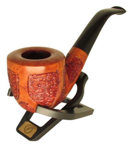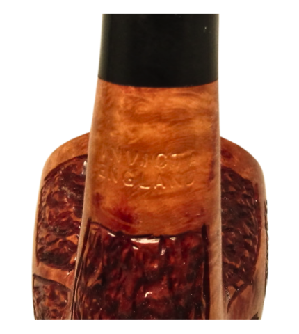 Invicta Pipes are an English firm dating to 1935. They are a small operation run from a rustic farmhouse. This Invicta Bent Billiard has some heft, and the carving is quite unique. Quite a nice conversation piece, in our opinion!