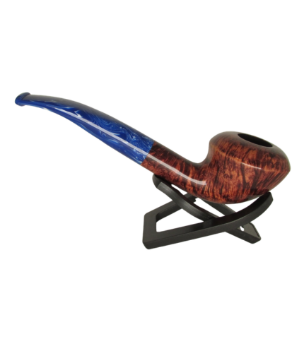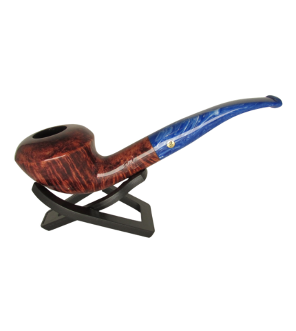 The Klondike 426 bowl is a deep, rich burgundy red which ages with grace and charm into a deep almond brown with smoking. The bowl is a hand-finished shape that is matched with a tiger-stripe hand-cut acrylic stem. A sleek and comfortable pipe, this is perhaps the most stylized shape in the Brigham line.