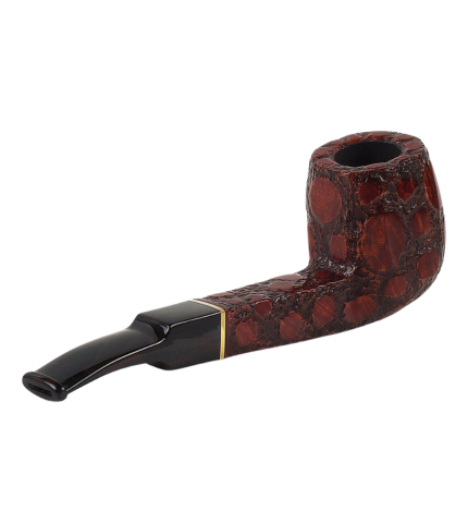 What immediately sets the Alligator Brown version apart is its finish: a partial rustication interwoven with smooth polished panels, artfully carved to evoke the rugged, scale-like texture of an alligator’s hide. The stain is a rich brown that deepens into the textured recesses, giving both visual and tactile interest when held. The combination of finish and form makes this pipe as much a statement piece as a smoking tool.