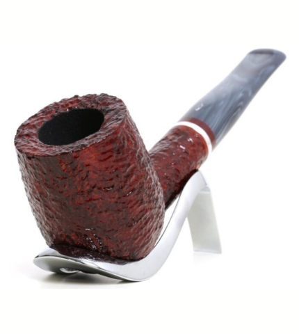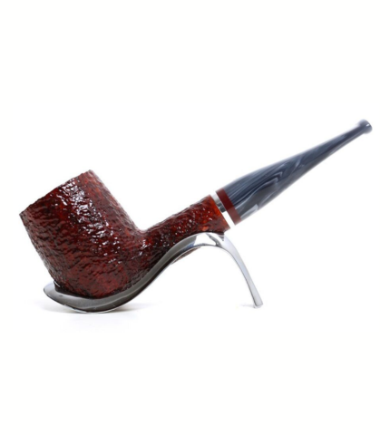 The Lunaria series is crafted in two finishes, both in burgundy colour: smooth and rusticated. The acrylic stem, which evokes the colours of the moon, features shades ranging from light gray to dark gray, perfectly harmonizing with the pipe’s colour. Completing the aesthetic balance is an aluminum ring that adds a touch of brightness and shine. The series is available in five different models, with the option to choose a 6mm or 9mm hole diameter. Model 141 KS has a thick conical shank a little bit shorter than standard Billiards. Its dimensions give the pipe a great solidity.
